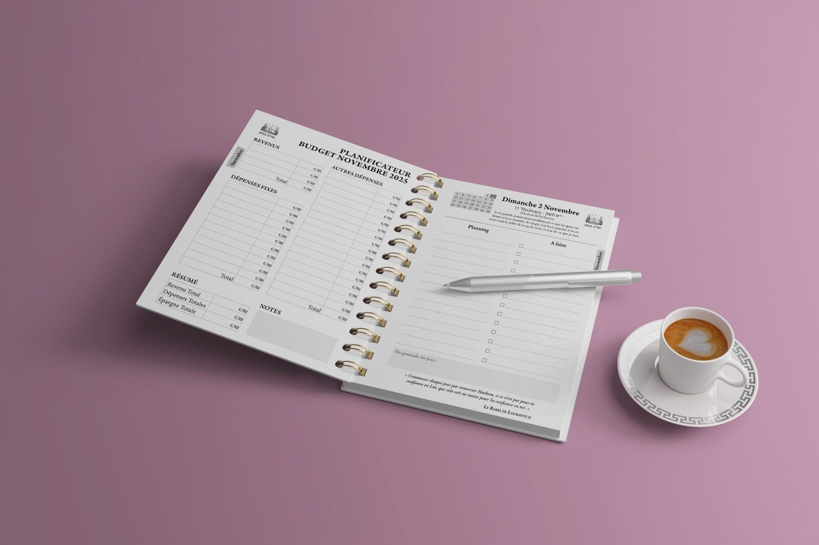 - Un organisateur journalier avec un espace dédié au planning et aux listes de tâches à effectuer chaque jour (1 page par jour)
